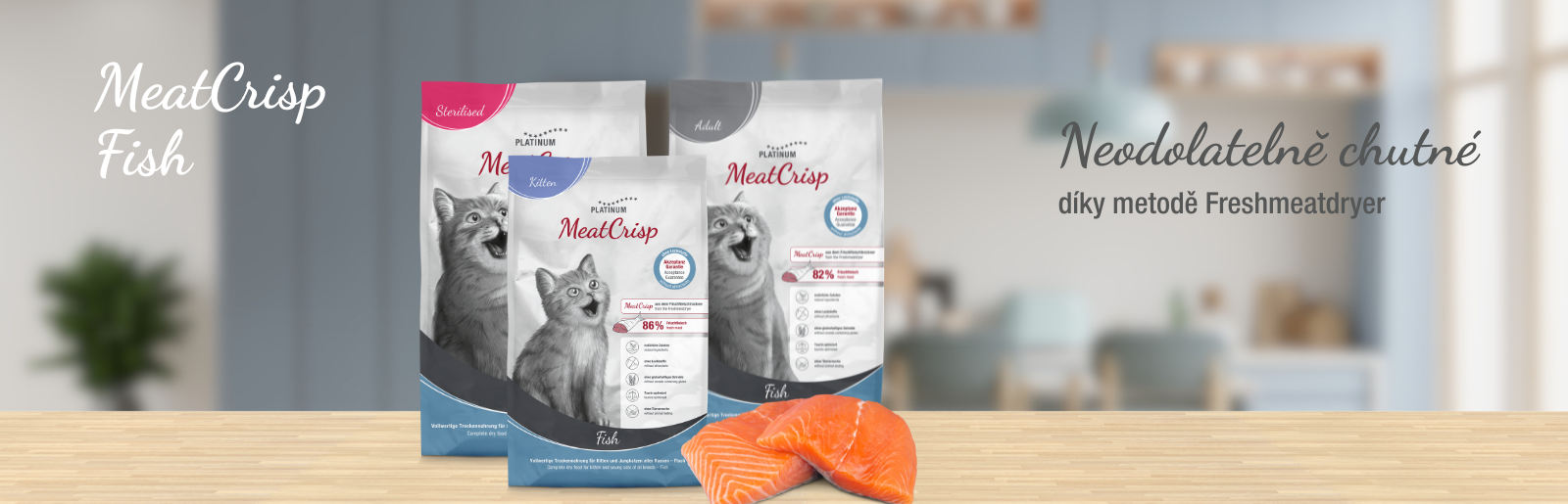 Platinum MeatCrips Sterilised Fish MeatCrisp je první zdravé plnohodnotné krmivo pro kastrovan...